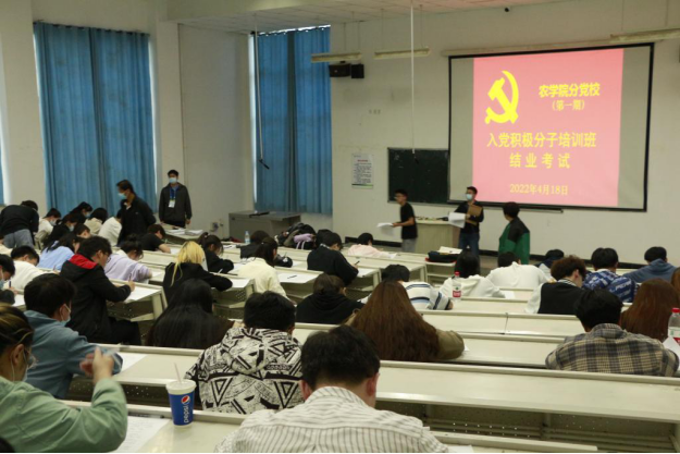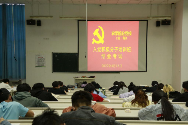 为考察我院入党积极分子的理论素养,检验入党积极分子党课培训效果,进一步增强对党的丰富内涵认知,4月18日晚,我院77名入党积极分子于综合楼阶教三举行了农学院第1期入党积极分子结业考试。
