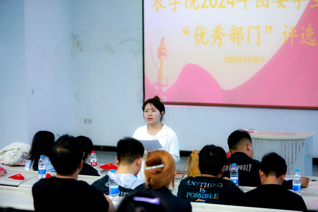 为进一步健全学生组织体系,提高学生会各部门工作的热情和质量,以此来促进农学院学生会工作更好的发展,我院于2024年9月28日17点在综合楼阶梯教室4成功举办农学院2024年团委、学生会“优秀部门”评选活动。出席本次活动的有农学院团委书记王婷婷老师、农学院辅导员郑向冉老师、刘婷老师、王宏凯老师,农学院全体学生干部及各部门干事参加本次活动。
