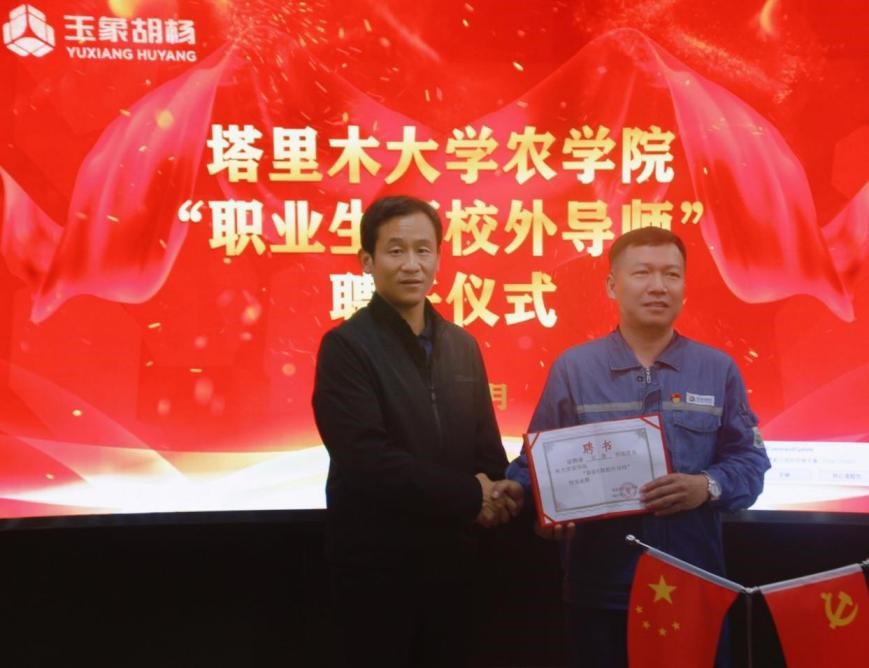 新疆玉象胡杨化工有限公司董事长、职业生涯校外企业导师田勇说:“我将按照兼职导师的工作职责,定期来校与学生进行交流分享,参与到学院大学生职业生涯规划与就业指导工作中来,引导毕业生树立科学理性的职业观、就业观,促进学院毕业生更高质量和更充分就业。同时,欢迎塔大优秀学子到企业学习调研和实践实训。”