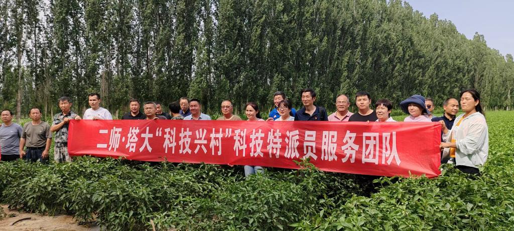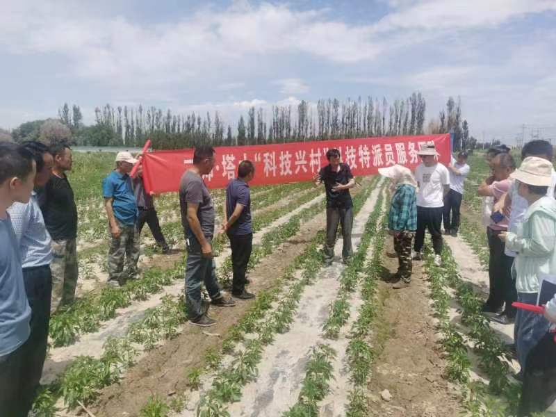 6月18日至22日,开云app体育网页登录不上 现代农业种植科技服务团队王冀川教授、柳维扬教授、王有武副教授,联合第二师农科所,赴第二师24团2连、园2连、8连、9连、10连、11连,及和硕县新塔热乡、乌什塔拉乡、曲惠乡、塔哈其镇等开展农作物中期管理科技服务工作。活动中,专家们开展基本知识的培训,并走进田间地头,发挥科技特派员技术特长,查看辣椒、玉米、小麦、甜叶菊、籽用西葫芦、防风(中草药)等粮食及特用经济作物的生长情况并现场指导。借助活动开展农资、技术图书捐赠;在2连建立辣椒高效种植科技示范基地,科技特派员结合农作物的生长特性,种植技术,针对种植户提出的田间管理、预防病虫害等问题一一做出了解答并提出解决方案,制定水、肥、调、防技术措施。参加团、连、村联合组织的主题党日活动,增进连、乡融合交流,促进“科技兴村”工作效果提升。