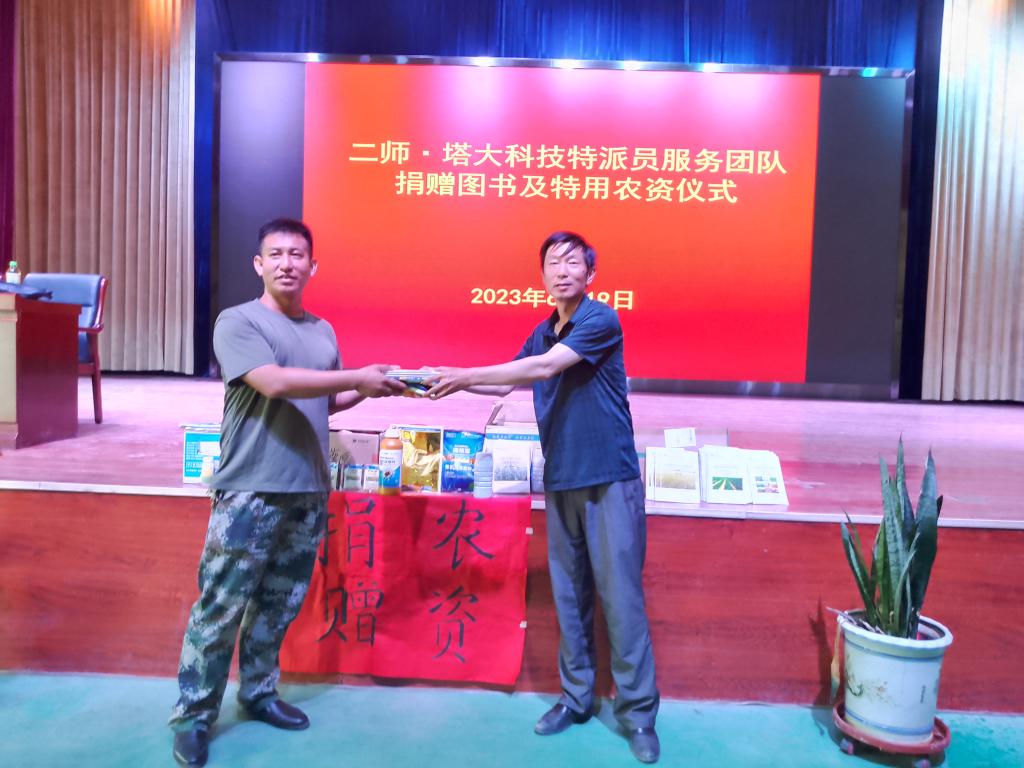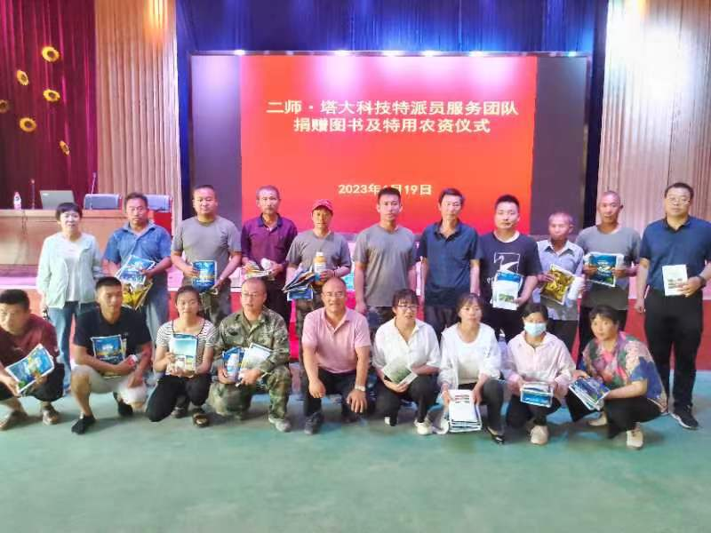 6月20号下午团队来到24团二十四团东片区3个连队以多媒体形式,围绕粮油作物、辣椒、加工番茄、甜叶菊等方面为职工开展了培训活动,并为连队捐赠了图书《特用作物生长诊断与高效种植技术》500册,捐赠高效调节剂与特用农药等农资5箱。
