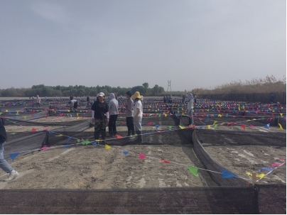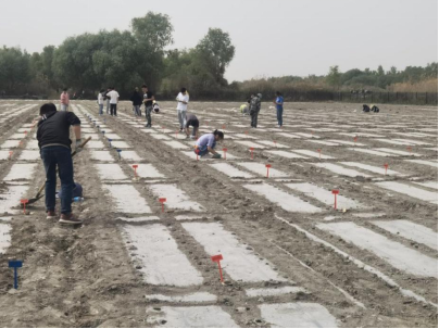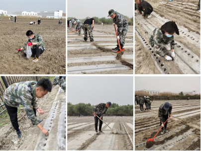 东区胡杨林试验基地共计148亩,主要种植的农作物有棉花,大豆,玉米,高粱,孜然等,播种主要有大田机播和试验小区人工点播两种方式。在农学系老师的带领下,师生来到田间地头,分工协作,拾取残膜,拉线布设小区、地膜打孔、扫除膜上覆土、播下种子、覆土盖种,每个环节都井然有序,有条不紊。虽然当天有些风沙浮沉,但依然阻挡不了大家春耕的热情,现场一派热火朝天的景象。