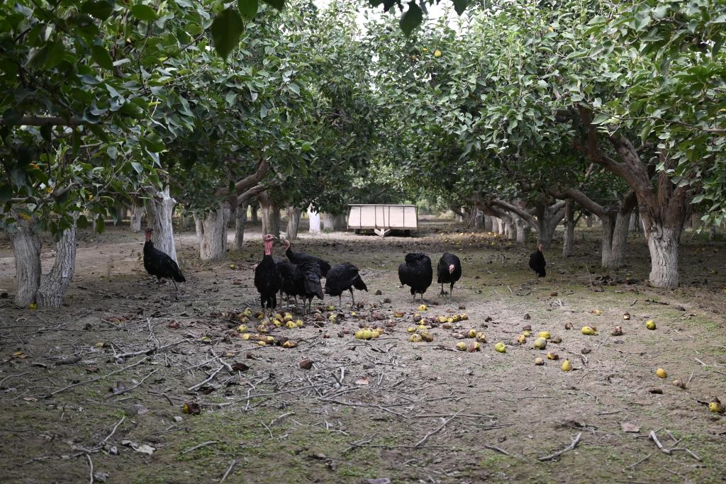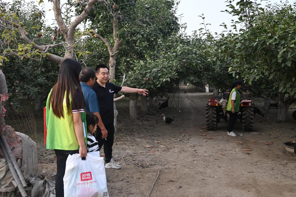 梨树为火鸡和鸭提供了良好的生活环境,而动物们的粪便有效的成为了梨树的肥料。这样有效降低了饲养、种植成本,也使其走上了生态、经济效益双丰收的可持续发展道路。在地头团队成员与农户进行了探讨和访问,咨询了该模式下农资投入使用情况。随后团队又来到当地农户的糜子地进参观调查。