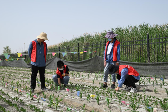 赵书珍老师指导学生对大豆的出苗率进行了调查,开展了生动的田间课堂