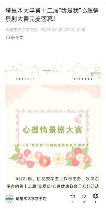 本届心理健康月活动以心理中心为总指导,同时大力推进及指导二级学院及社团的深度合作和创新,不断加大对心理中心品牌特色活动的扶持和推进,巩固以往活动优势与精髓的同时,持续注入新鲜血液,活动“品牌”、“创新”双轨并进。同时利用线上媒介的优势,推进多样化的线上活动的设计、引领和参与。利用微信公众号的品牌效力,累计推送心理健康教育月相关文章10余篇,邀请校外专家面向全体学生、开云足球app 者、开展主题讲座,普及宣传心理知识。活动覆盖面广,形式丰富多彩,寓教于乐,聚焦学生积极心理品质培育,服务助力学生成长成才,不仅帮助同学们养成自尊自信、热爱生活的心理品质,建立和谐友善的人际关系,同时进一步提高了学生自我效能感,更好地应对学习和生活的各项挑战,营造了积极向上的育人氛围。最大限度地增强了大学生对心理健康概念的接纳与重视,提升了活动在学生的覆盖率与影响力。