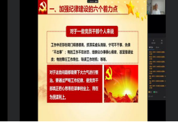 首先蒋学玮书记给我们普及了党的纪律条例、问责条例、巡视条例,并强调了自建党以来对纪律方面的重视。之后,为我们明确了加强纪律建设的六个着力点。在这之后,为我们普及了与党性质水火不相容的“腐败”这一恶劣行为的相关内容。十八大以来党在“打虎”“拍蝇”“猎狐”方面取得巨大进展,表明了党坚持反腐败无禁区、全覆盖、零容忍的坚决态度。懂规矩才有定力,守规矩才不乱方寸。中华民族的伟大复兴不可逆转,但船到中流浪更急,人到半山路更陡。无论是国家,还是个人,前进的道路总是布满荆棘,绝不会一帆风顺。勇敢地迎接和克服各种挑战和困难,是我们义不容辞的责任。