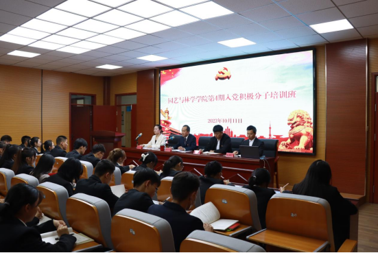 为进一步做好发展党员工作,提高入党积极分子的理论素养,确保发展党员质量,10月11日下午,园艺与林学学院分党校2023年下半年入党积极分子培训开班仪式在园艺与林学学院三楼报告厅举行。学院党委书记蒋学玮、党政(党建)办公室副主任訾莉莉、设施工程系学生党支部书记余游江、林学园林系学生党支部书记曾勇及第4期入党积极分子培训班全体学员参加。会议由訾莉莉主持。