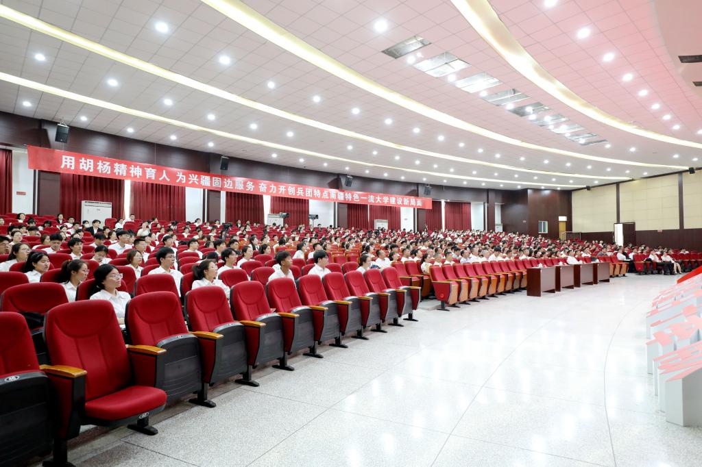 张爱萍讲到,胡杨精神是塔大人艰苦奋斗、无私奉献、扎根边疆服务国家战略的生动体现;是塔大人投身兵团建设发展、服务兵团屯垦戍边职责使命的精神支柱;是新时代塔大人奋进新征程、建设兵团特点南疆特色一流大学的力量源泉。全体学员要向上生长,做志存高远的新时代胡杨;向下扎根,做自强不息的新时代胡杨;向内求索,做明德向善的新时代胡杨;向外创新,做格物穷理的新时代胡杨;向前奔跑,做担当奉献的新时代胡杨;向后谦让,做虚怀若谷的新时代胡杨。