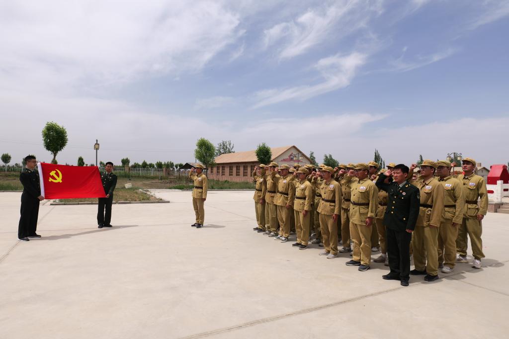 到达教育基地后,进行“扎根促生产”情景剧排演活动,有的人拿镐、有的人拉犁、有的人挑着扁担,再现三五九旅战士们屯垦戍边的光荣岁月,大家切身感受到了老一辈兵团人在自然环境恶劣和物资缺乏的情况下,是如何用青春和热血诠释“热爱祖国、无私奉献、艰苦创业、开拓进取”的兵团精神。