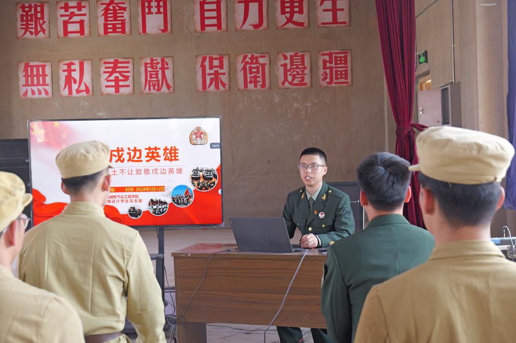随后,开展“铁骨铮铮,初心闪耀”专题党课,支部退伍成员漆亚兵、冯永刚、朱阁卫用自己军旅成长过程,声情并茂地讲述了边防官兵在边防斗争中誓死保卫祖国领土的坚定决心,鼓励在场人员牢记强国有我的誓言,刻苦学习、坚定信仰、担当奉献,用勇气、拼搏、奋斗亲手谱写青春华章。