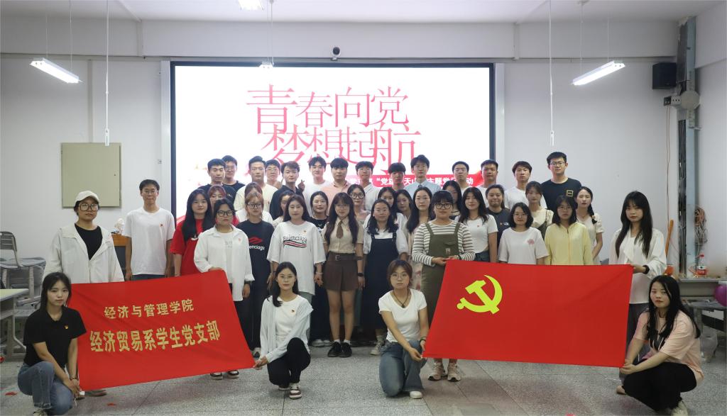 为学习贯彻习近平新时代中国特色社会主义思想,开展好党纪学习教育,教育引导学生党员筑牢党的纪律防线,充分发挥毕业生党员在各行各业的先锋模范作用,5月26日,经贸系学生党支部于逸夫楼307教室开展了“党旗映天山”主题党日活动,经贸系学生党支部书记徐振威同志,支部所有党员以及16名入党积极分子参加。