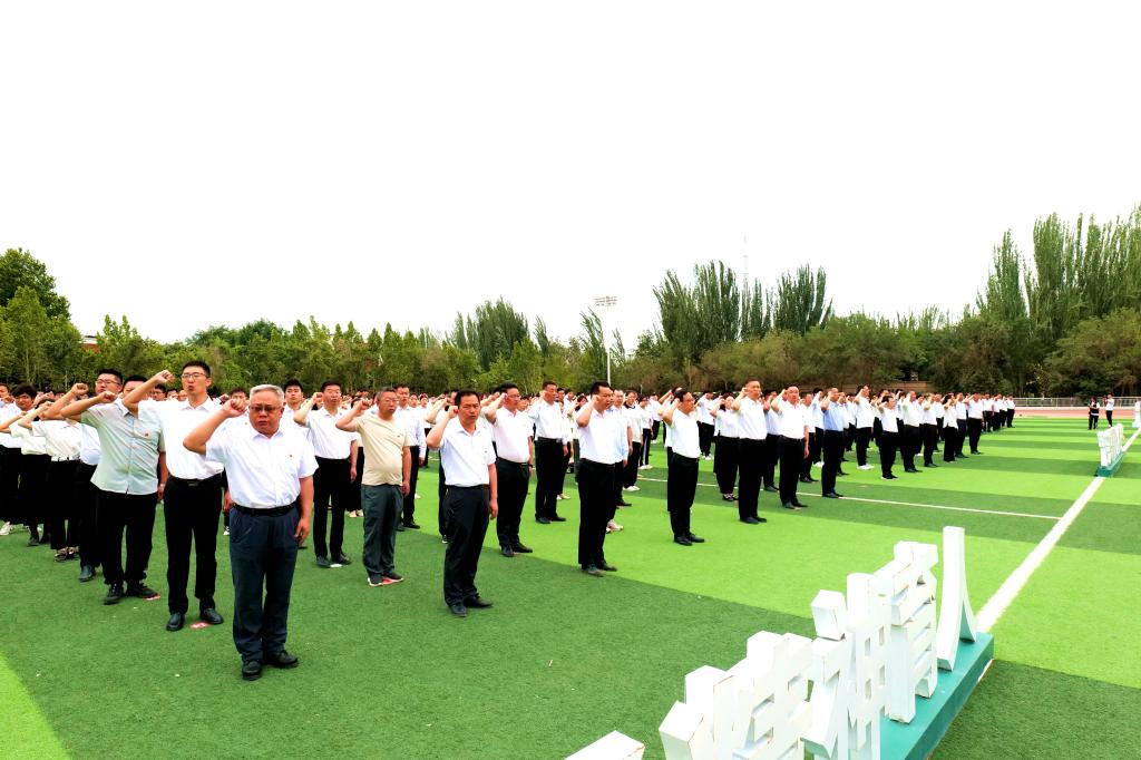 在中国共产党成立103周年之际,6月30日上午,伴随着雄壮的奏唱国歌声,开云app体育网页登录不上 庆“七一”升国旗、入党宣誓活动在东区运动场举行。党委书记张爱萍讲话。党委副书记、校长闫祥林主持。校领导于军、石长青、林松涛、汤智辉、居来提·司马义、郑麟、万传星、张宏荣、谢建新、张伟信参加。